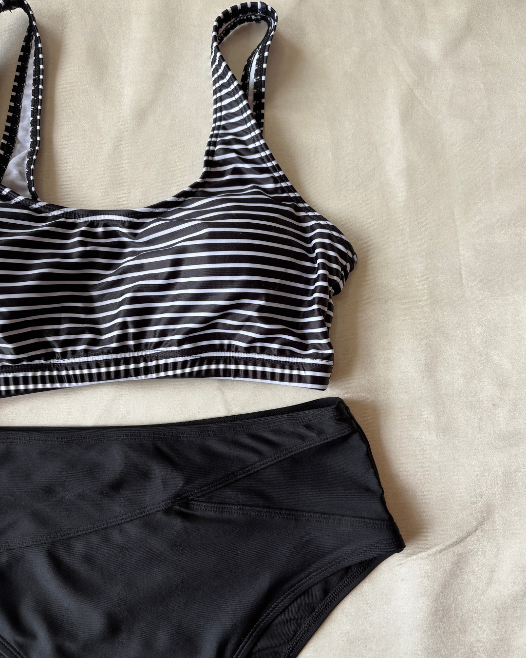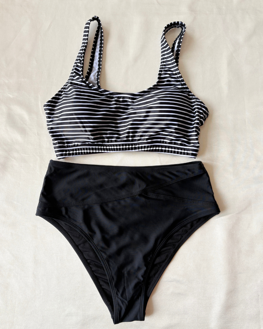 Bikini confeccionado en licra con copas y calzón de tiro alto.