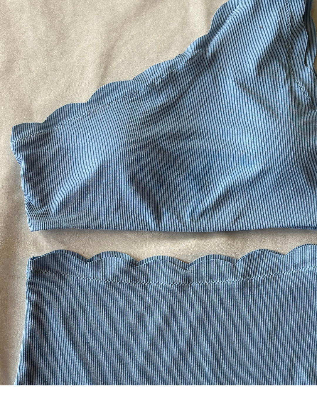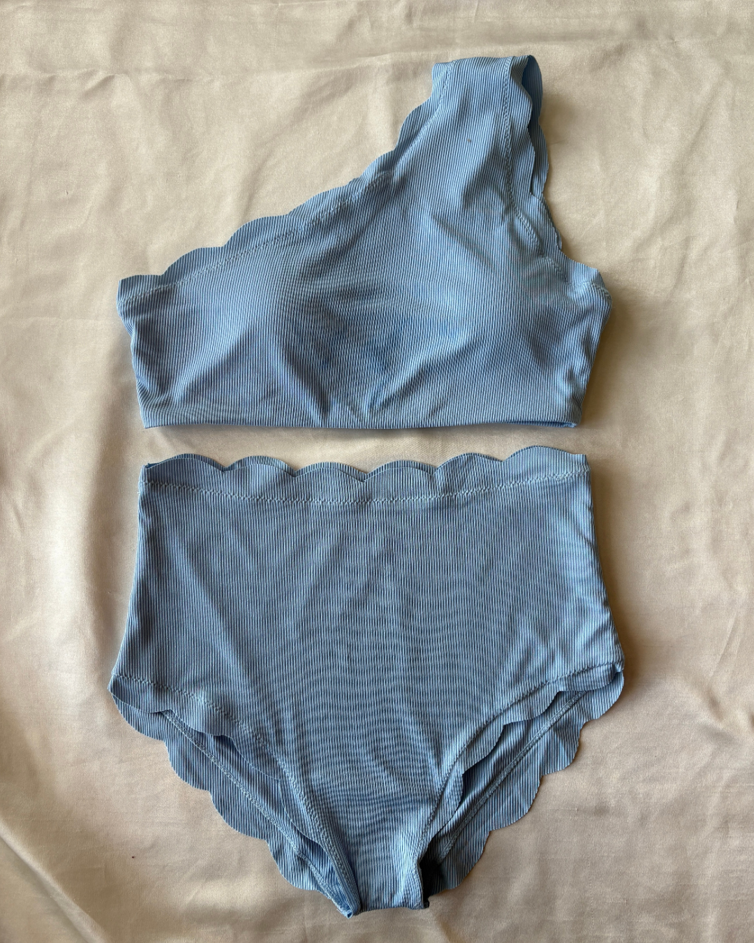 Bikini con tela texturizada y calzón alto ,con un diseño único.