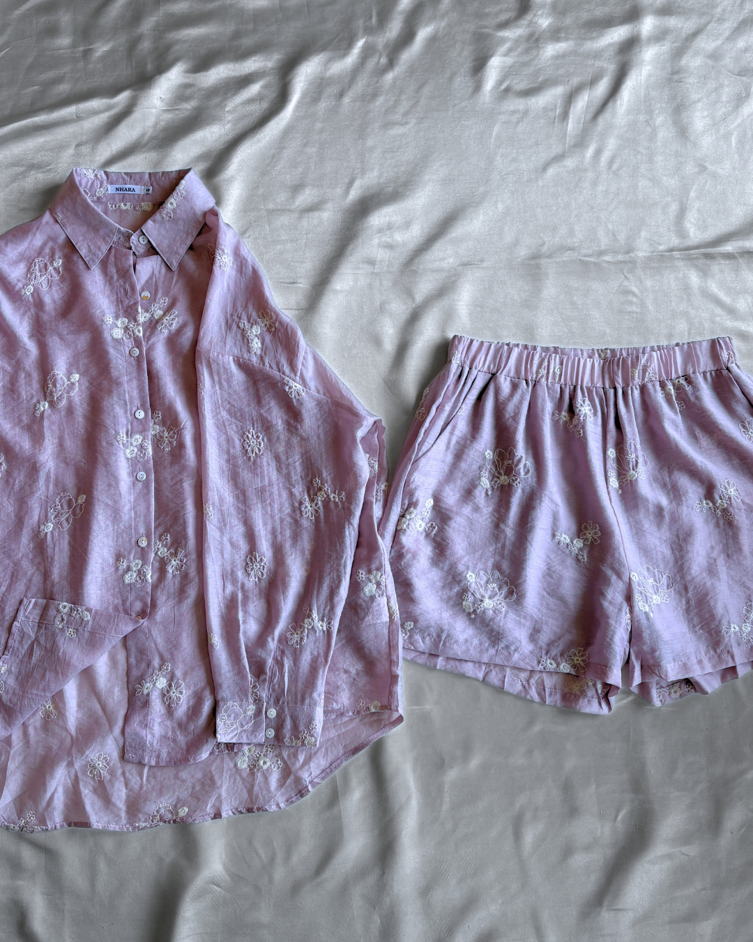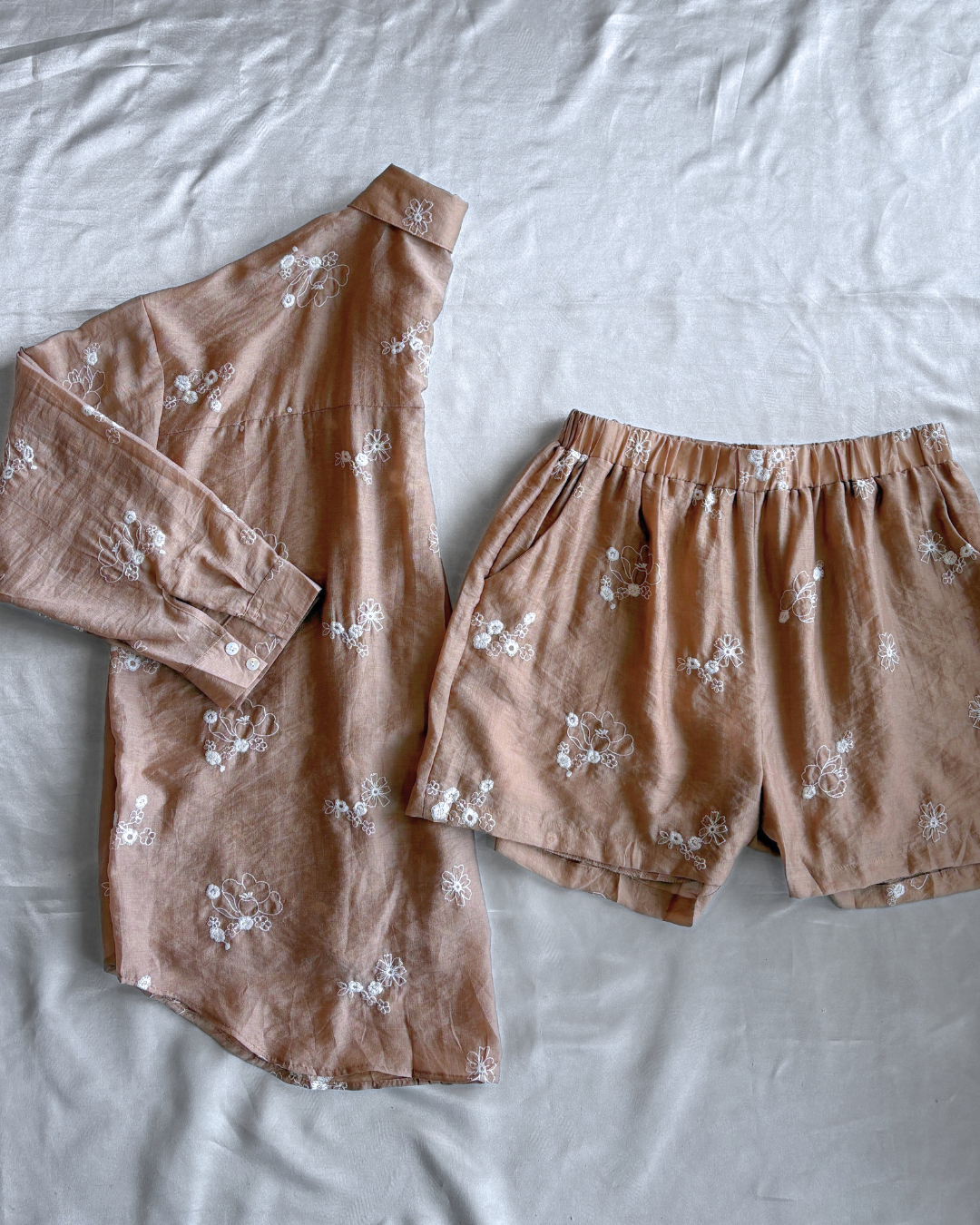 Conjunto con tela fresca y suave con estampado floral.