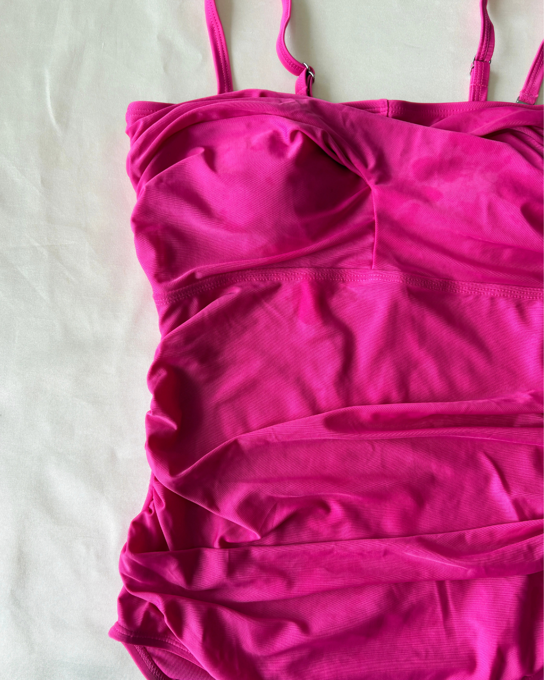 Traje completo confeccionado en licra, con tirantes y calzón de pierna alta.