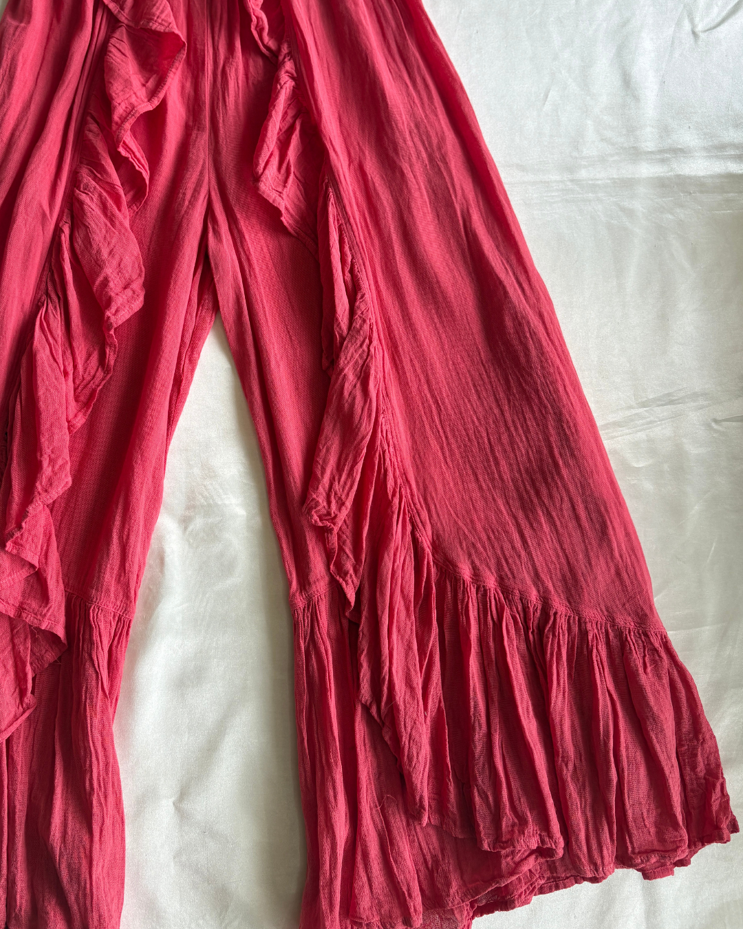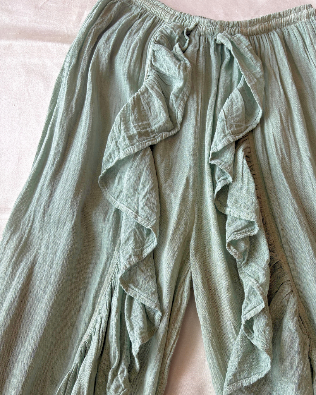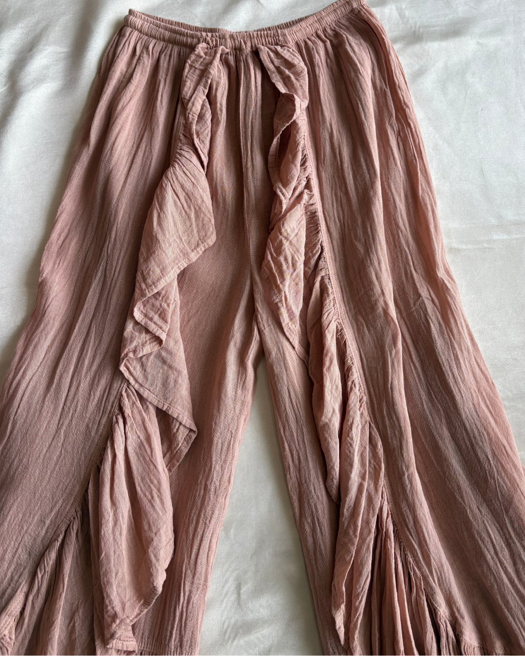 con olanes en varios colores con tela fresca y aberturas en los laterales.