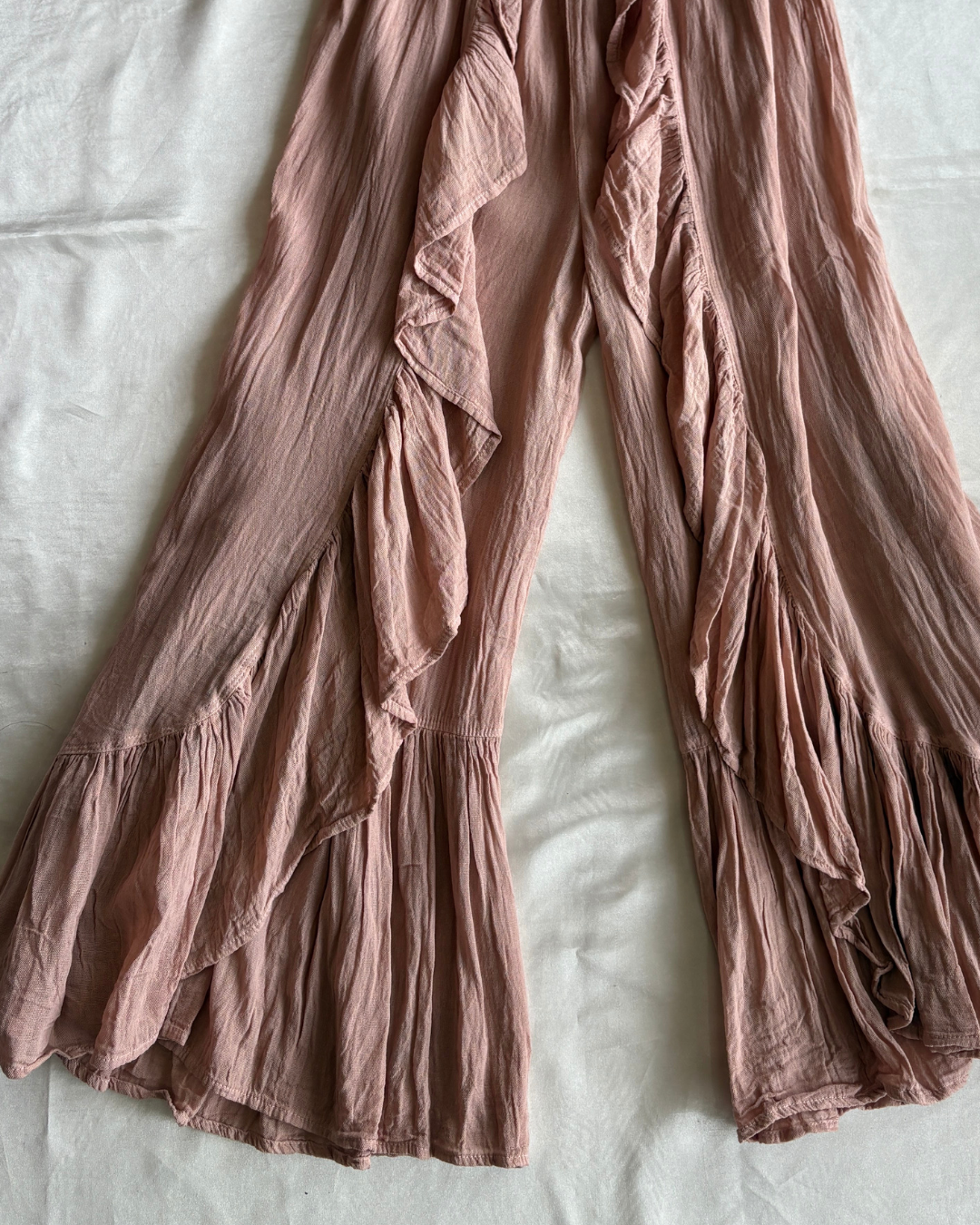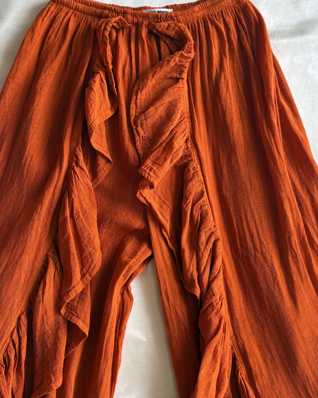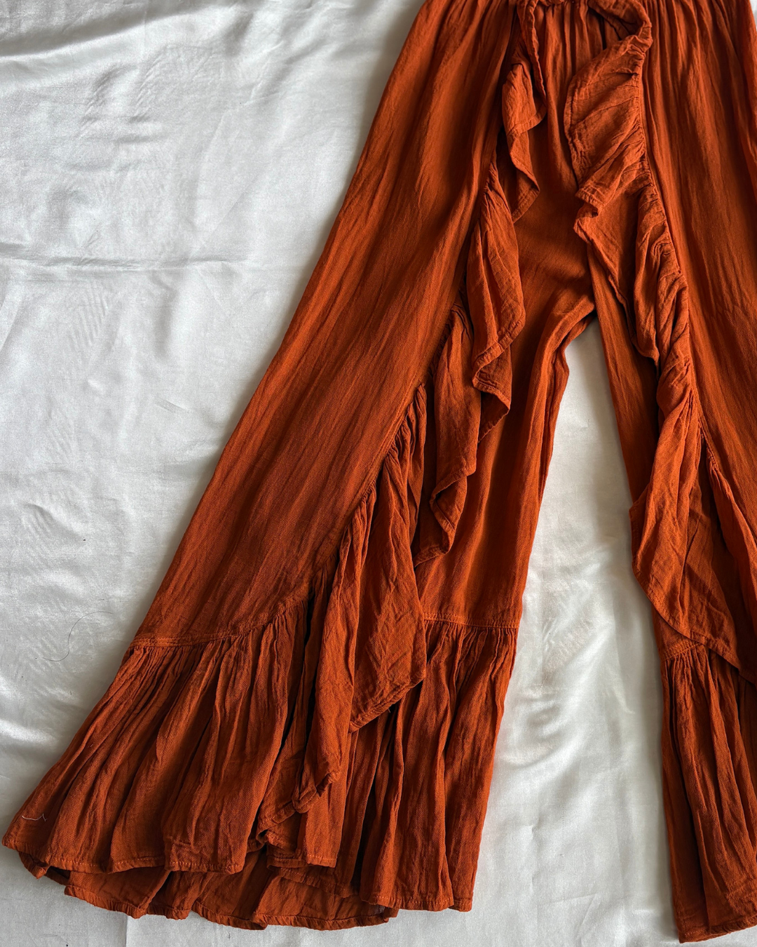 con olanes en varios colores con tela fresca y aberturas en los laterales.
