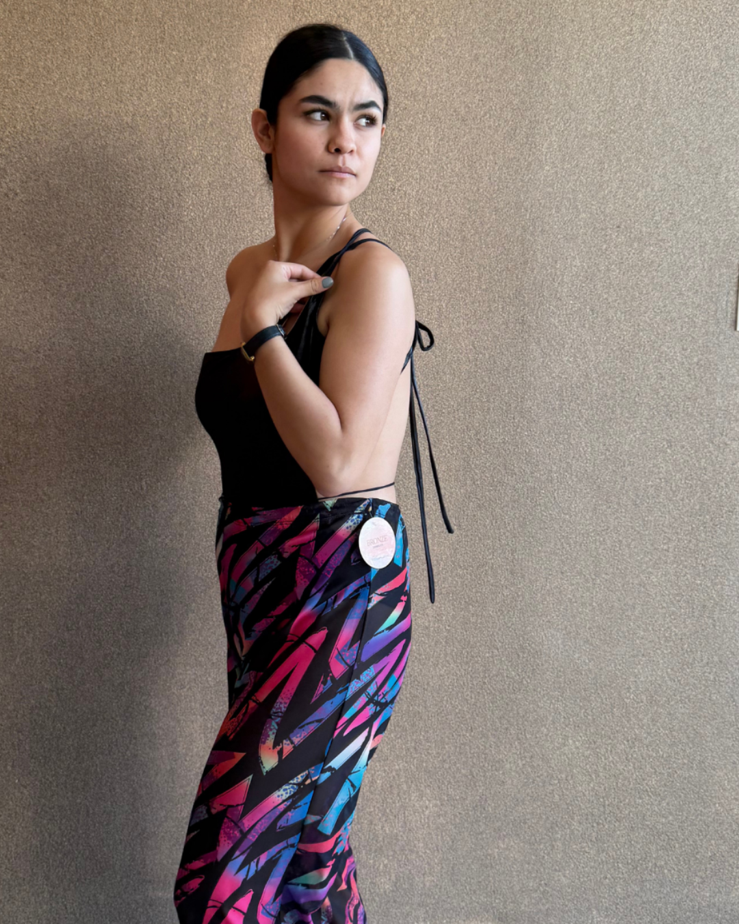 Salida de baño de tela fresca, con cordones ajustables y diseño en tonos vibrantes que aporta un estilo único y moderno.Talla: UNITALLA