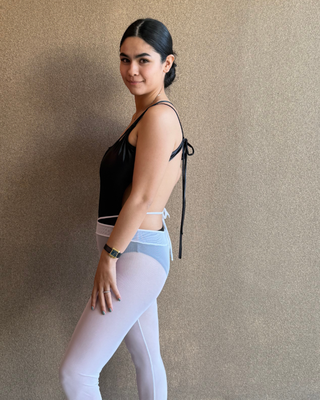 Pantalón liso corto y cómodo, con tela transparente y ajuste en la parte superior.