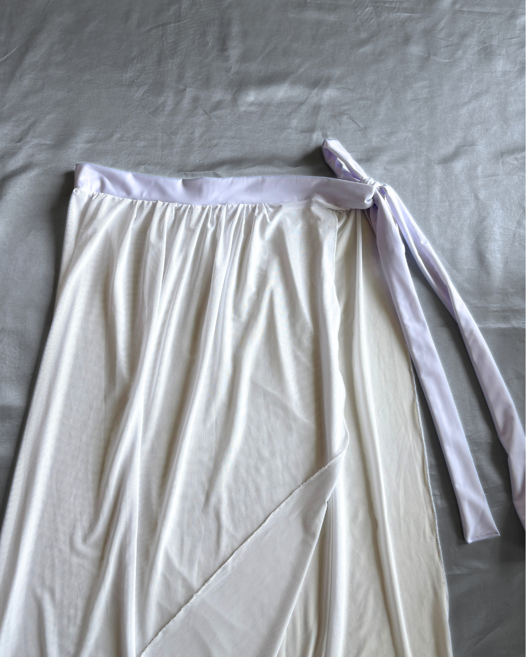 Falda larga translúcida con tiras ajustables en los laterales.
