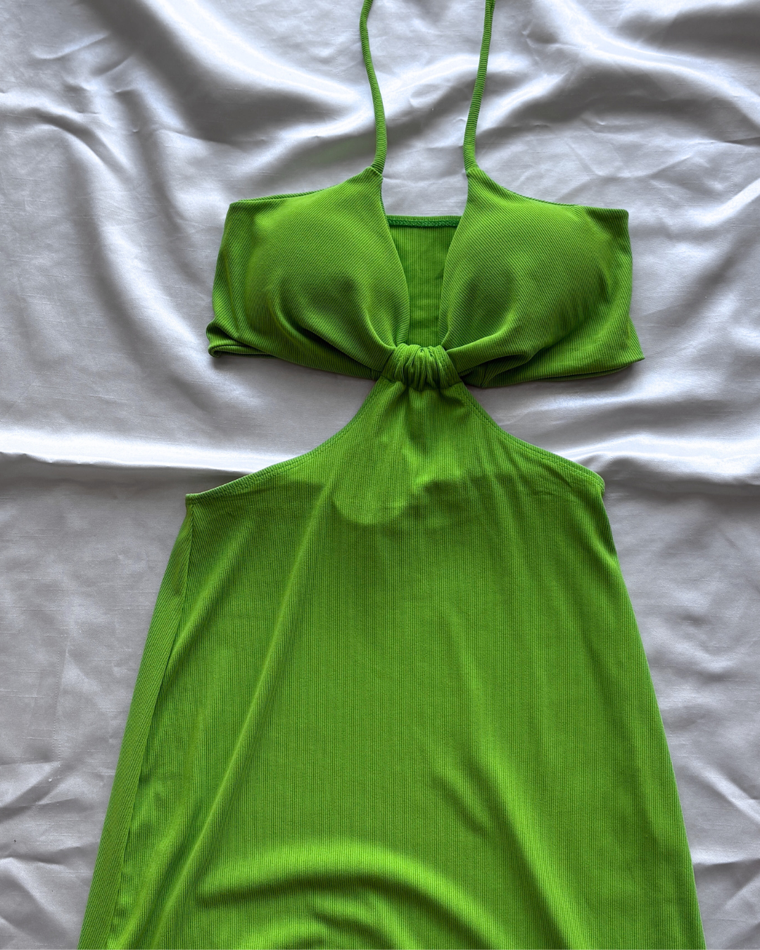 Vestido largo con pierna abierta, escote V y aberturas laterales